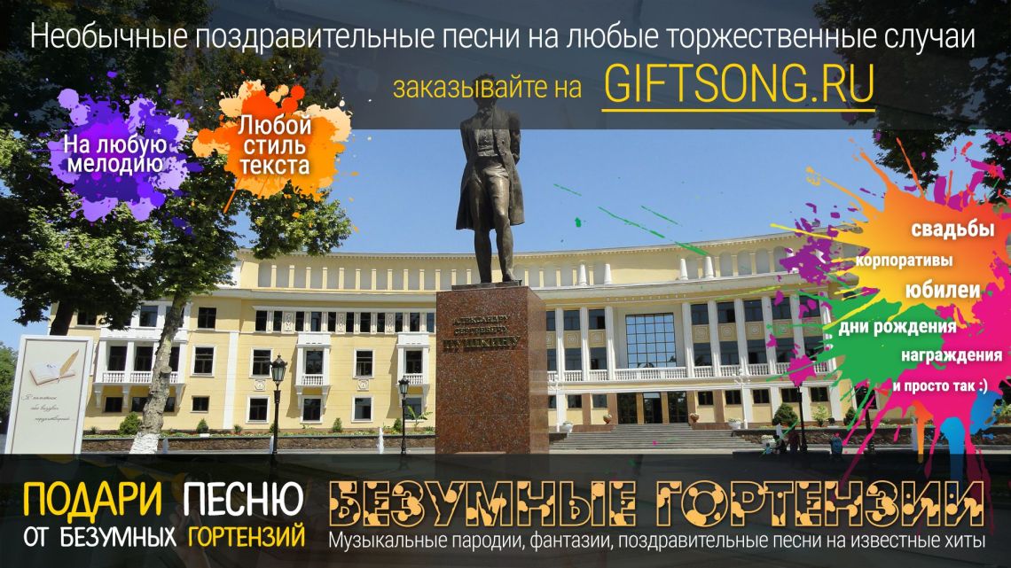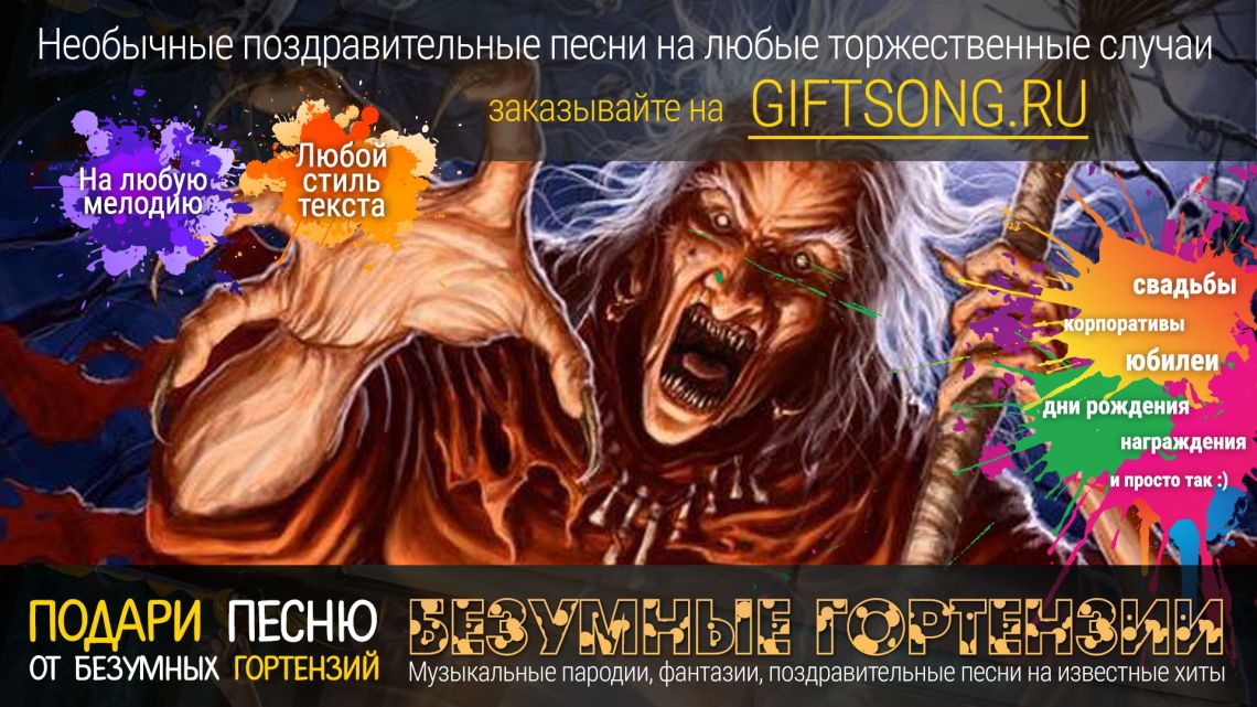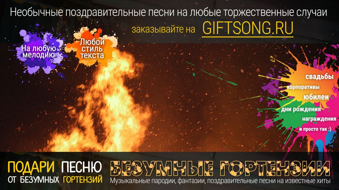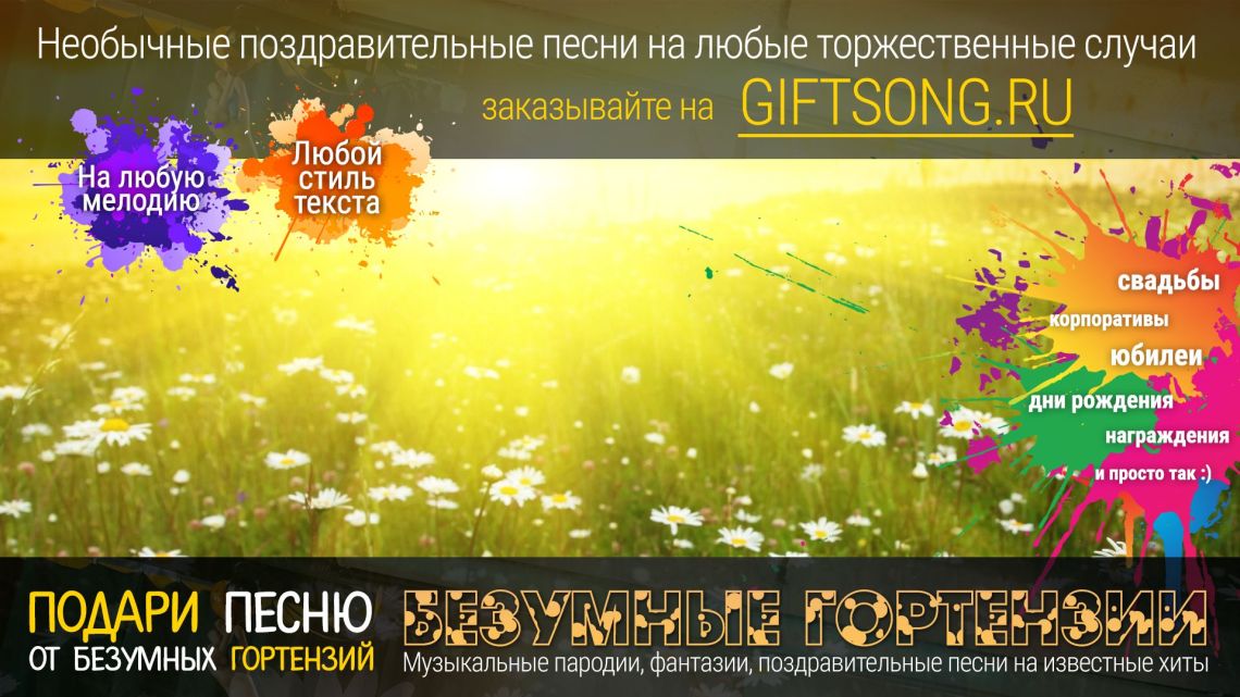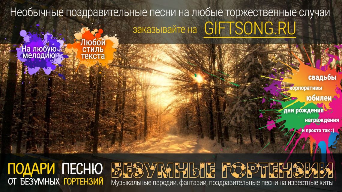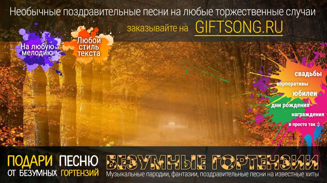 Песня в подарок — отличный вариант для самых смелых и оригинальных. Она расскажет о виновнике торжества, о вашем друге, родственнике или о целом коллективе! Мы придумаем и запишем для вас уникальную искрометную поздравительную песню, которая расскажет о виновнике торжества, порадует всех гостей и произведет фурор на торжественном мероприятии.
